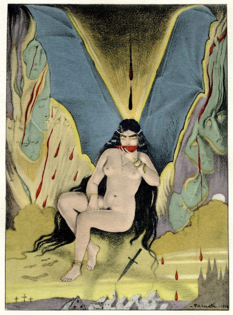 « La femme aux chiens » (1912) de L’érotin, pseudonyme qui cache un certain Alphonse Momas (1846-1933)