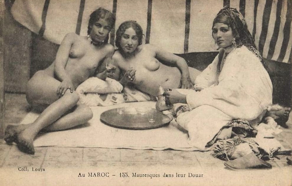 Pierre Louys, (1870- 1925) fut romancier, poète, conteur et même photographe, ainsi qu’un grand amoureux des femmes et de leur postérieur, comme on le verra plus tard. Ses ouvrages les plus connus restent « Aphrodite » (1896) qui évoque le monde des courtisanes de la Grèce antique à travers le destin de l’une d’elles qui donne son titre au livre. « Les chansons de Bilitis » (1894) recueil de poèmes que Louys attribua à une poétesse contemporaine de Sapho, ce qui était évdemment faux, l’oeuvre étant bien celle de notre ami Pierrot. Il n’en demeure pas moins que cette supercherie littéraire était amusante et permit de ridiculiser la pédanterie de la critique de l’époque. Enfin, il y a « Trois filles de leur mère » qui narre les joies de la prostitution en famille et qui fut publié à titre posthume en 1926. Je n’ai pas cité pour des raissons de temps les autres oeuvres mais j’y reviendrais sans doute plus tard. Quant à ses incursions dans le domaine de la photographie, elle témoigne d’une autre de ses passions, outre l’Antiquité, le monde Arabe. A l’instar de nombre de ses contemporains, Louys était saisi par le mirage colonial et surtout par ses femmes exotiques.