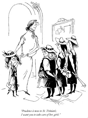 A noter que Saint Trinian’s s’inspirait d’une série de dessins de Ronald Searle – en les transposant de manière très adoucie- décrivant d’horribles collégiennes torturant leurs petites camarades.