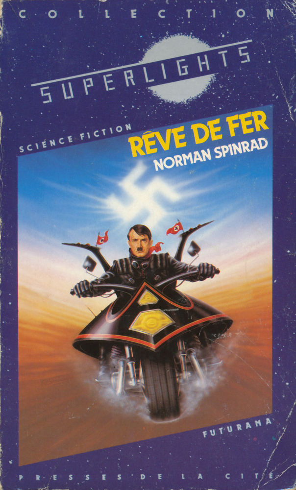 « Rêve de fer » (1972) de Norman Spinrad, livre qui me marqua lors de mon adolescence en raison de son concept un faux livre de Adolf Hitler, immigré aux USA plutôt que de revenir au Vaterland. Ce n’est ni plus ni moins que l’ascension et la chute du petit moustachu transposées dans univers futuriste. Henri Viard (déjà cité) se livra à ce genre de détournement historique plus tôt, en mieux et en plus drôle.